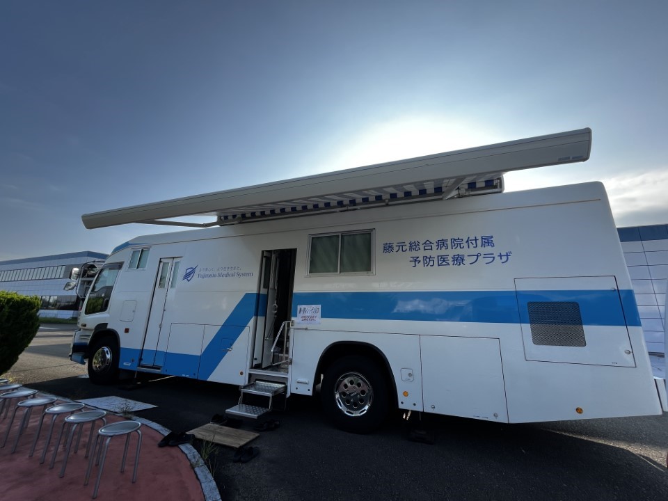 健診車は社屋前に設置され、レントゲンなどの検査を効率よく実施。